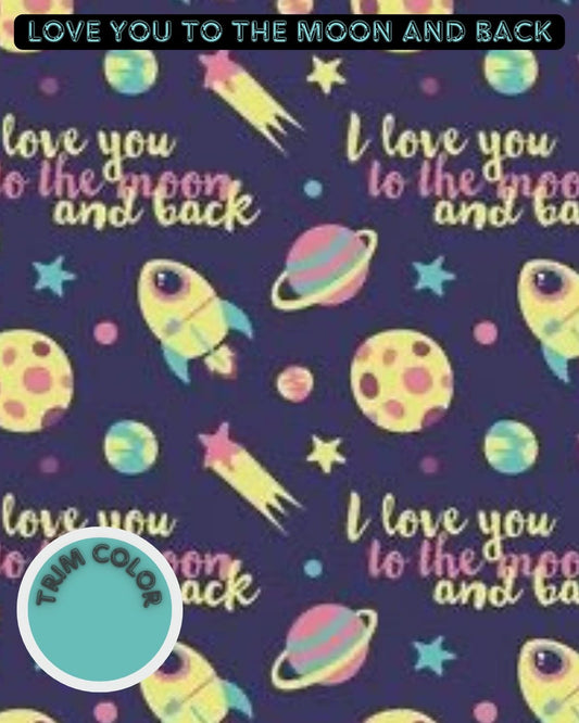 Love You To The Moon & Back - Dog Pajama with Aqua Neck & Trim/Sleeves