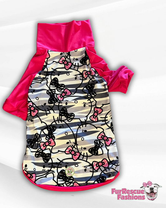 Peek A Kitty Dog Pajama with Hot Pink Neck & Trim/Sleeves