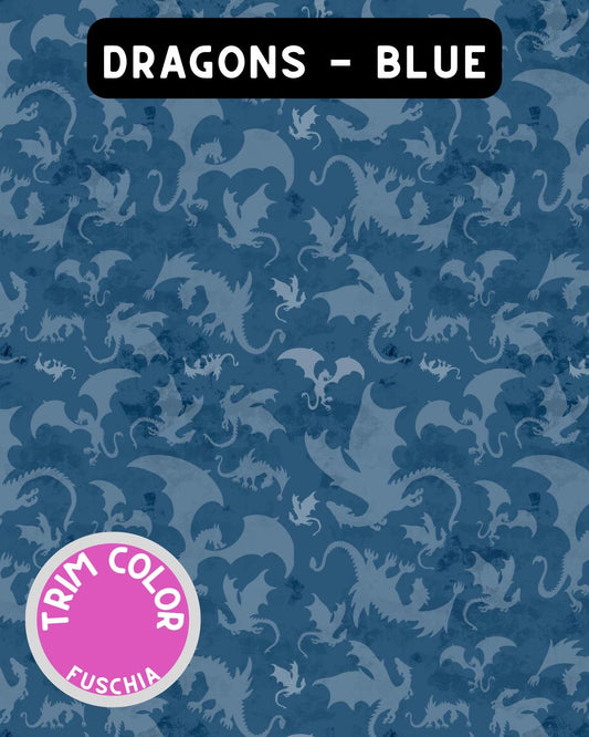 Dragons - Blue Dog Pajama with Pink Trim, Neck & Sleeves