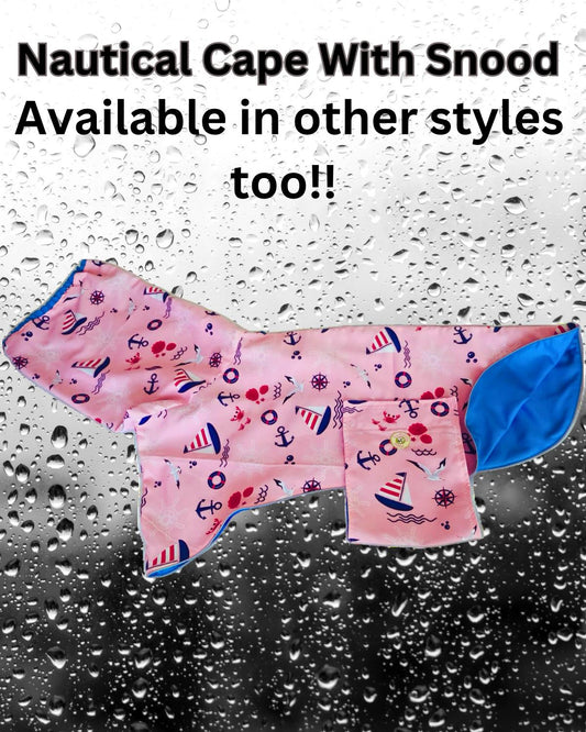 Red & Berries Rain Jacket - Cape - Vest with Printed Ruffles, Trim & Hoodie/Snood