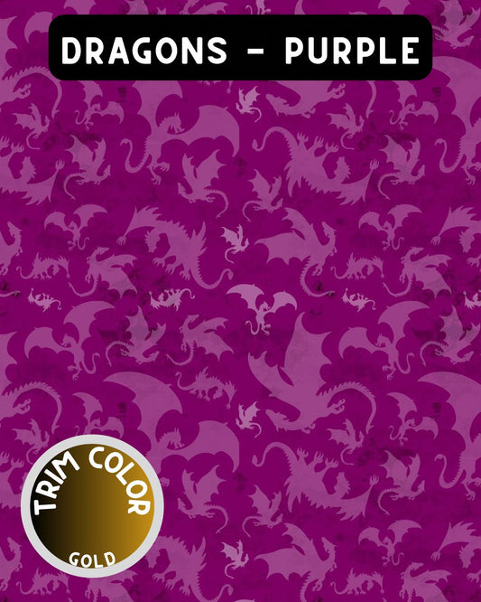 Dragons - Purple Dog Pajama with Gold Trim, Neck & Sleeves
