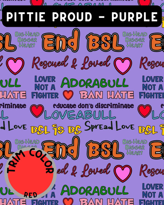 Pittie Proud Purple - End BSL Dog Pajama with Red Neck & Trim/Sleeves