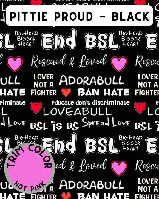 Pittie Proud Black - End BSL Dog Pajama with Red OR Hot Pink Neck & Trim/Sleeves