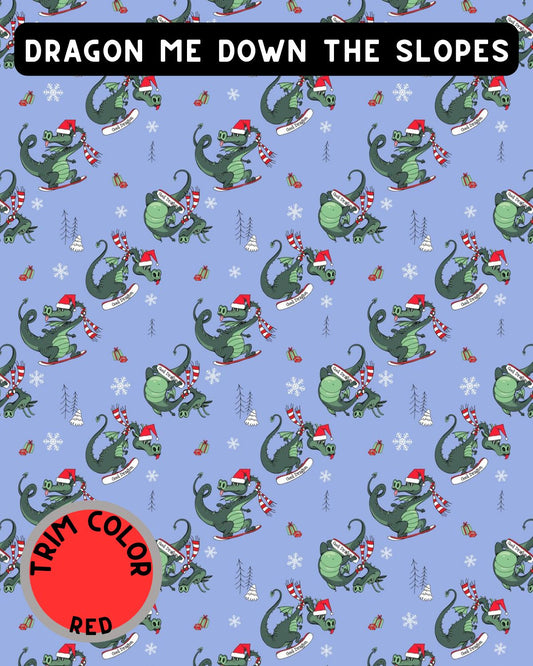 Dragon Me Down The Slopes - Dog Pajama with Red Neck & Trim/Sleeves