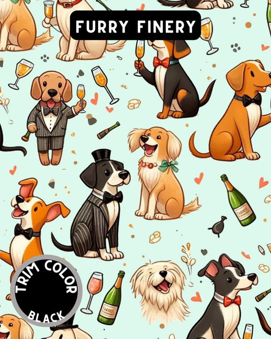 Furry Finery on NYE - Dog Pajama with Black Neck & Trim/Sleeves