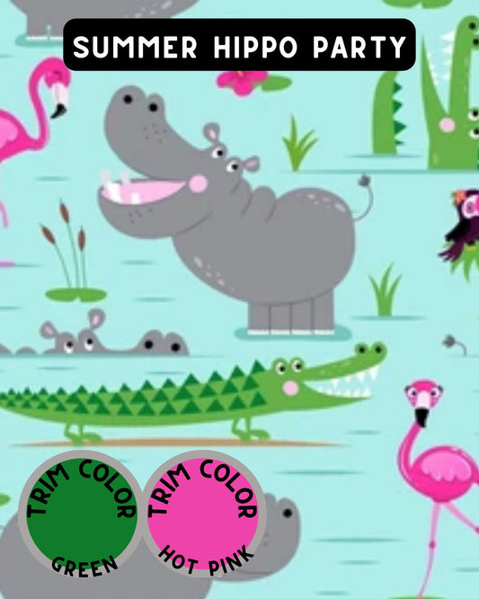 Summer Hippo Party Dog Pajama with Hot Pink OR Green Trim