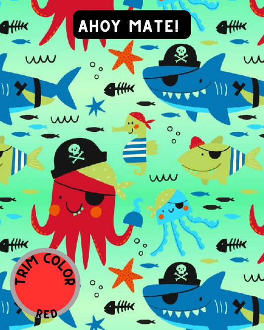 Ahoy Matey Pirates Dog Pajama with Red Trim