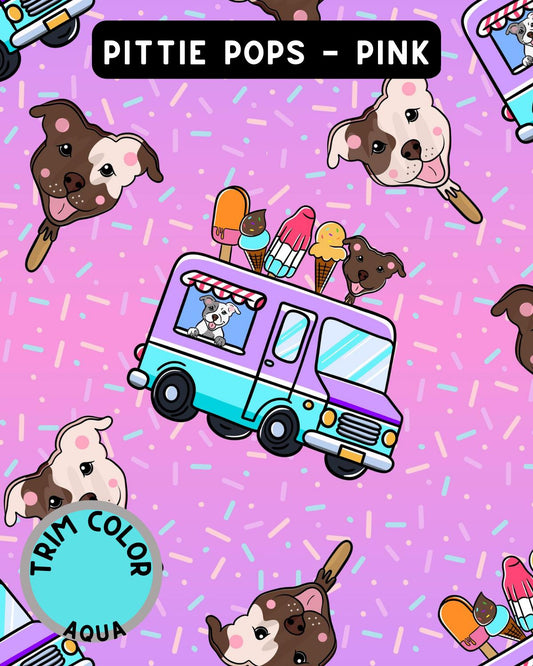Pittie Pops & Ice Cream Truck - Pink Dog Pajama with Aqua Trim