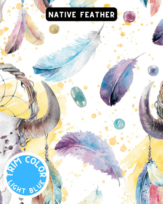 Native Feather & Dream Catcher Pajama with Light Blue Neck & Trim/Sleeves