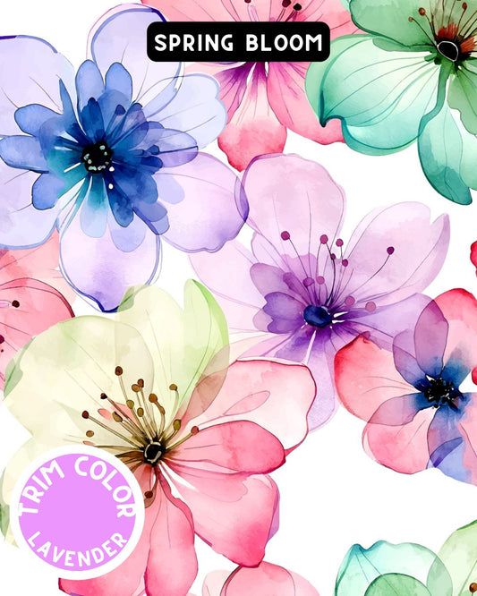 Spring Bloom Flowers Pajama with Lavender Neck & Trim/Sleeves