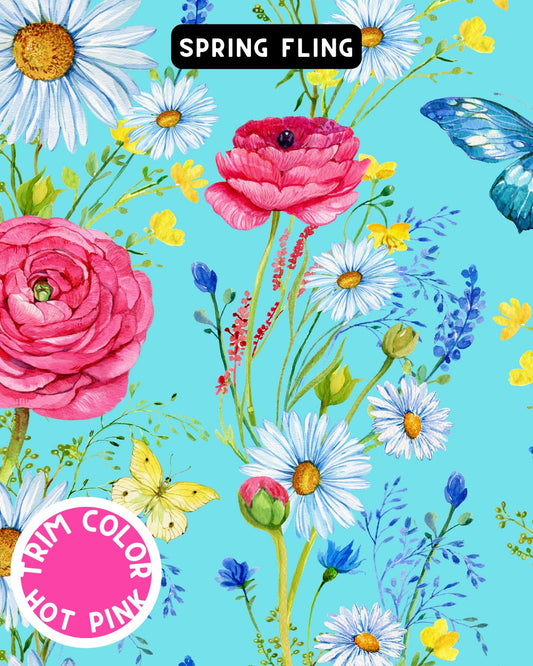 Spring Fling, Flowers & Butterflies Pajama with Hot Pink Neck & Trim/Sleeves