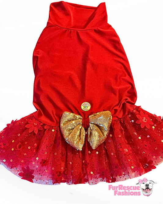Pretty in Pink Dog Dress – Cozy Sweatshirt Fabric with Black Bow & Turtleneck