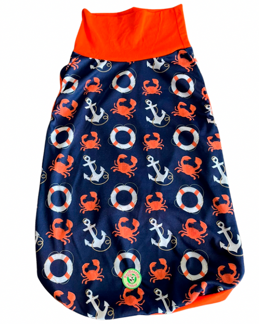 Bay Life (Crabs & Anchors) - PAWjama with Coral Neck & Trim/Sleeves
