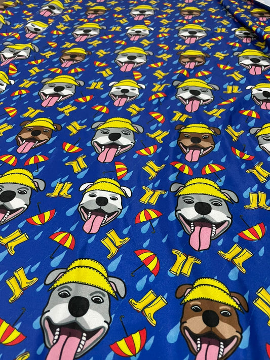Pitties in the Rain - PAWJama with Yellow Trim/Sleeves