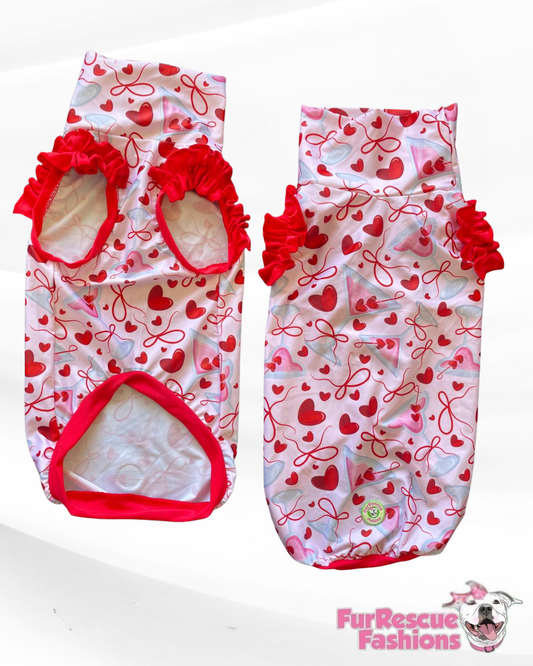 My Fur-Ever Valentine Dog Dress With Ruffle / With Sleeves or Sleeveless (Available in any pattern)