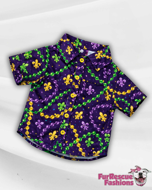 Mardi Paws Mash-Up Hawaiian Faux Button Up Dog Shirt With Sleeves (Choose Your Pattern)