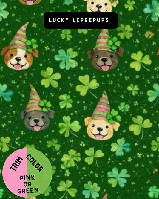 Lucky LeprePups Dog Pajama with Pink or Green Neck & Trim/Sleeves