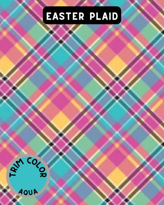 Easter Plaid Dog Pajama with Aqua Neck & Trim/Sleeves