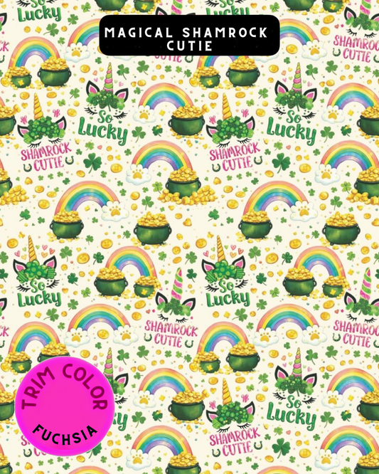 Magical Unicorn & Shamrock Cutie Pajama with Hot Pink Neck & Trim/Sleeves