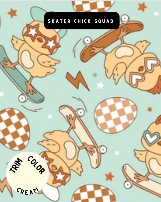 Skater Chick Squad Pajama with Cream Neck & Trim/Sleeves