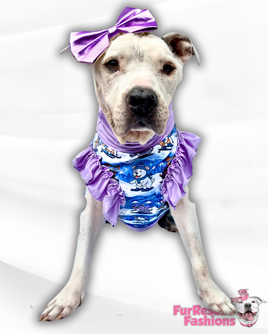 2025 Winter Wonders Dog Shirt With Ruffle On Waist (Available in any pattern)