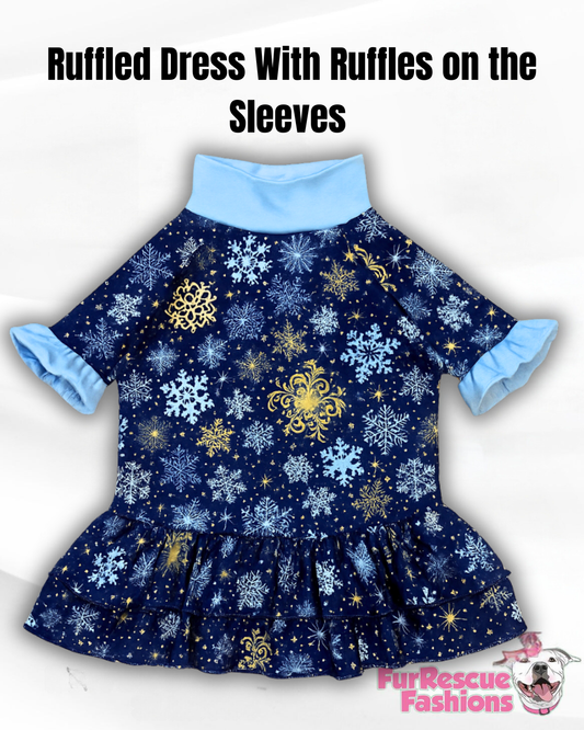 2025 Winter Wonders Dog Dress With Ruffle / With Sleeves or Sleeveless (Available in any pattern)