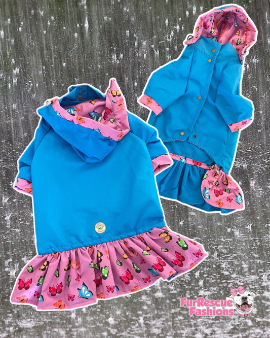 Butterflies' Sky Reversible Rain Jacket Or Cape with Removable Hoodie And Skirt Or Ruffles