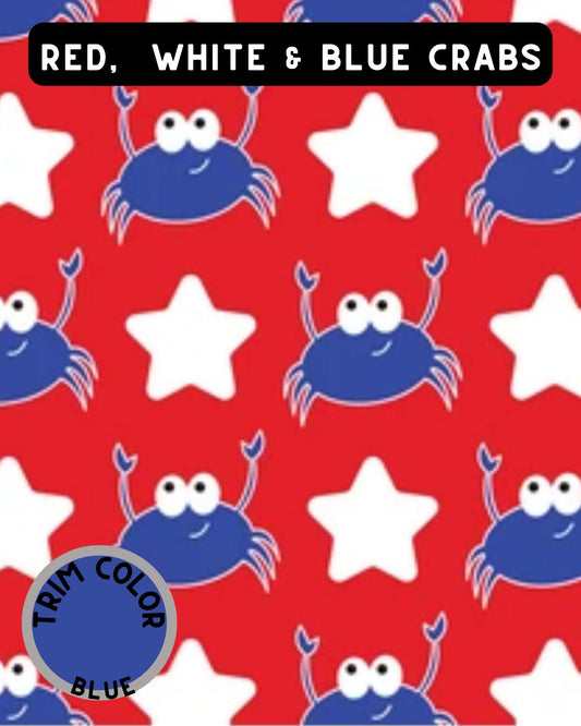 Red, White & Blue Crabs Dog Pajama with Royal Blue Trim