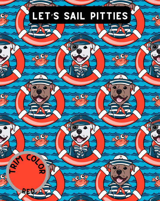 Nauti-Bull Crew: Letās Sail Pitties Dog Pajama with Red Trim