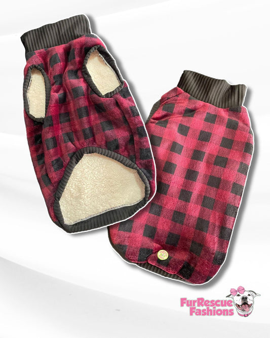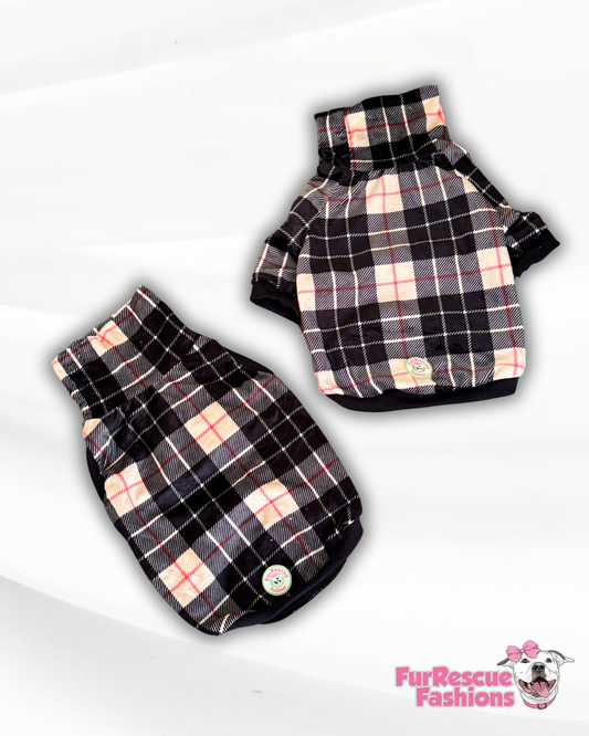 Barkberry Plaid Lux Dog Pajama with Black Trim