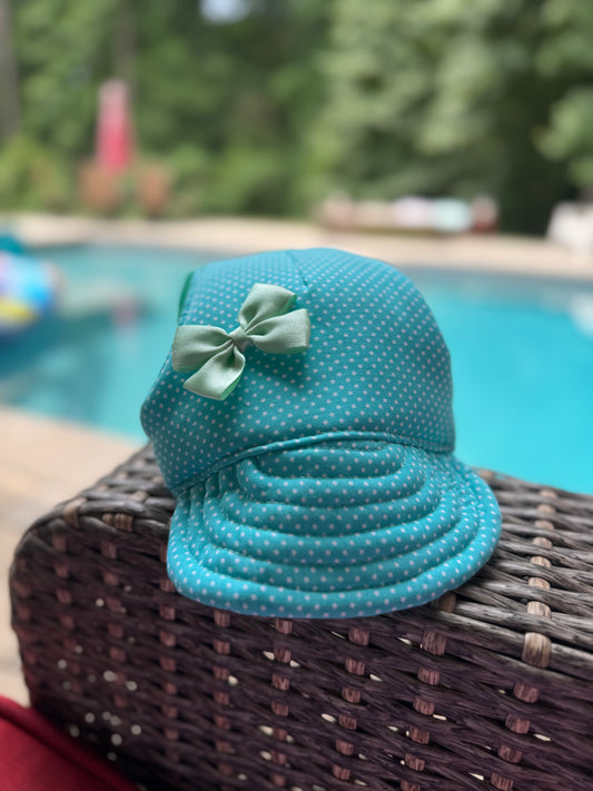 Aqua Polka Dot Dog Hat With Bow