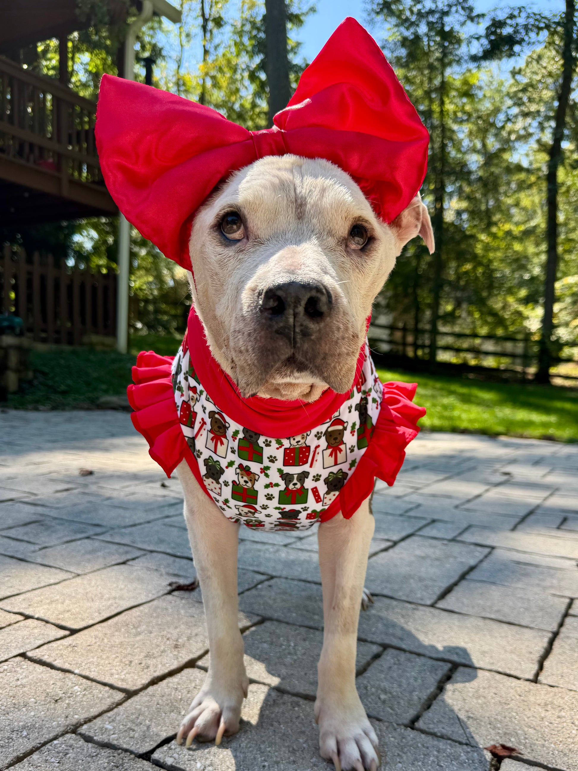 Gift Wrapped Joy Dog Pajama with Red Neck & Trim/Sleeves
