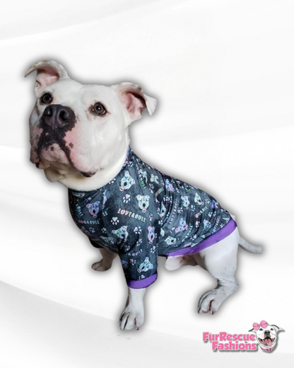 LoveABull - Dog Pajama with Lilac Neck & Trim/Sleeves