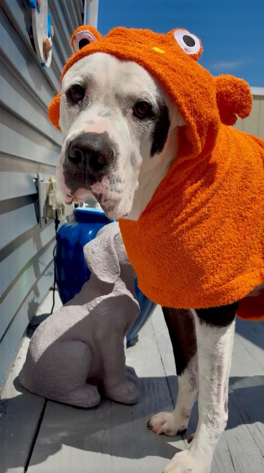 Best way to dry off after a bath! Keeps Gus nice and cozy while looking absolutely adorable!!