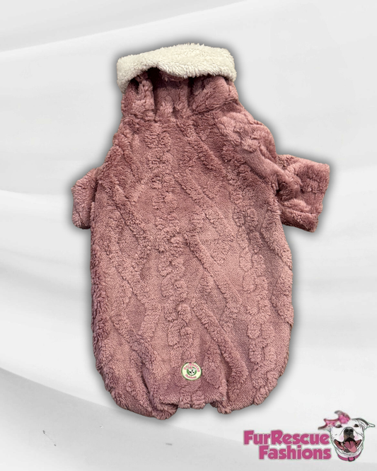 Rose Pink Velvety Plush Dog Sweater with Sherpa Lining
